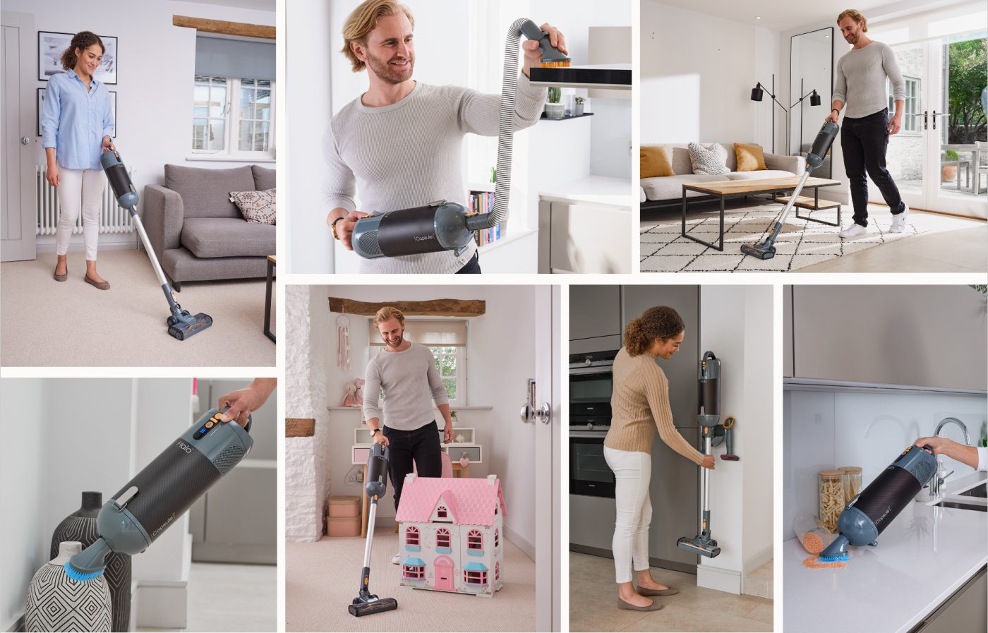 Pööratav manööverdusvõime. Eemaldatavad harjad kiireks ja lihtsaks puhastamiseks. Vahetatavad tarvikud võimaldavad vajadusel mugavat käsimoodulit. Mitmesuguste pindade puhastamine.